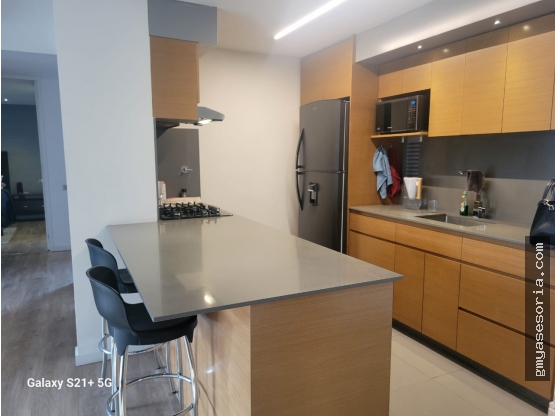 En una de las zonas mas exclusivas y apetecidas de Medellín, en el corazón de Milla de Oro, se encuentra este moderno apartamento, con acabados de lujo, de 116 M2 Dispone de 2 alcobas, 3 baños, estudio una barra estilo americano, cocina integral, balcón amplio y zona de lavandería. Las áreas comunes cuentan con ascensor, portería 24/7, circuito cerrado de tv, 2 parqueaderos privados y gimnasio.