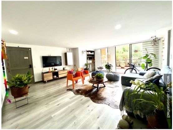 Venta de amplio y remodelado apartamento en Medellí, en el Poblado por la Loma del club campestre, zona residencial y tranquia. Cuenta con un área total de 184 M2., de los cuales 44 M2 son terraza. Esta ubicado en el primer piso. con tres habitaciones. La principal con baño, baños auxiliar y baño social. Habitación y baño del servicio. con un salón de sala comedor que se integra a las terrazas, parqueadero doble lineal y cuarto util.